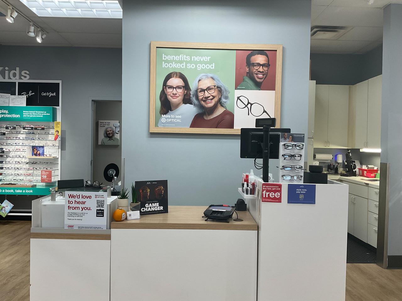 We make eye care easy at Mooresville Target Optical, located at 594 River Hwy. Get quality eye care, stylish frames, and great savings. We accept major insurance plans for a hassle-free experience. Shop top brands like Ray-Ban, Coach, and Oakley, plus Target favorites like A&A and Cat & Jack. Pair frames with specialty lenses or choose top contact lens brands. Enjoy our 90-day guarantee. Schedule an eye exam today with our Independent Doctors of Optometry.